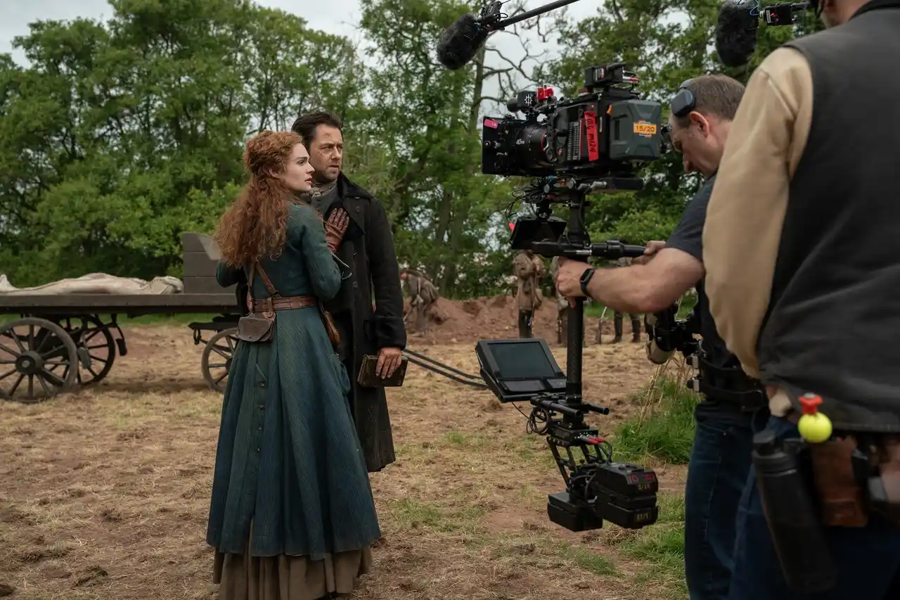 | このたび、最終章撮影の裏側をとらえたメイキング&オフショットを一挙解禁!最後の戦いを前に厳しい表情を湛えるジェイミー役のサム・ヒューアンの姿や筆頭に、緊迫したシーンに挑むキャストたちの鋭く真剣な表情が切り取られ、最終章の重厚さを予感させます。一方で、馬の背に体を預けるブリアナ役のソフィー・スケルトンのリラックスした表情や、談笑するキャストたちの自然体な姿も収められており、長年築き上げられたチームの温かな空気感が垣間見えます。 | |||||||||||||||||||||||||||||||||||||||||