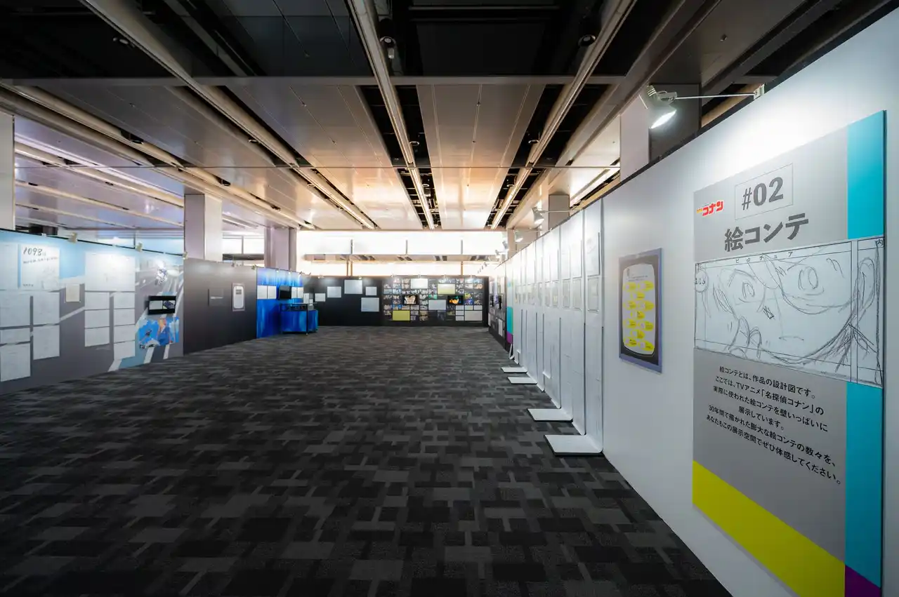 ここでは、TVアニメ「名探偵コナン」の実際に使われた絵コンテを壁いっぱいに展示しています。30年間で描かれた膨大な絵コンテの数々を、あなたもこの展示空間でぜひ体感してください。 |