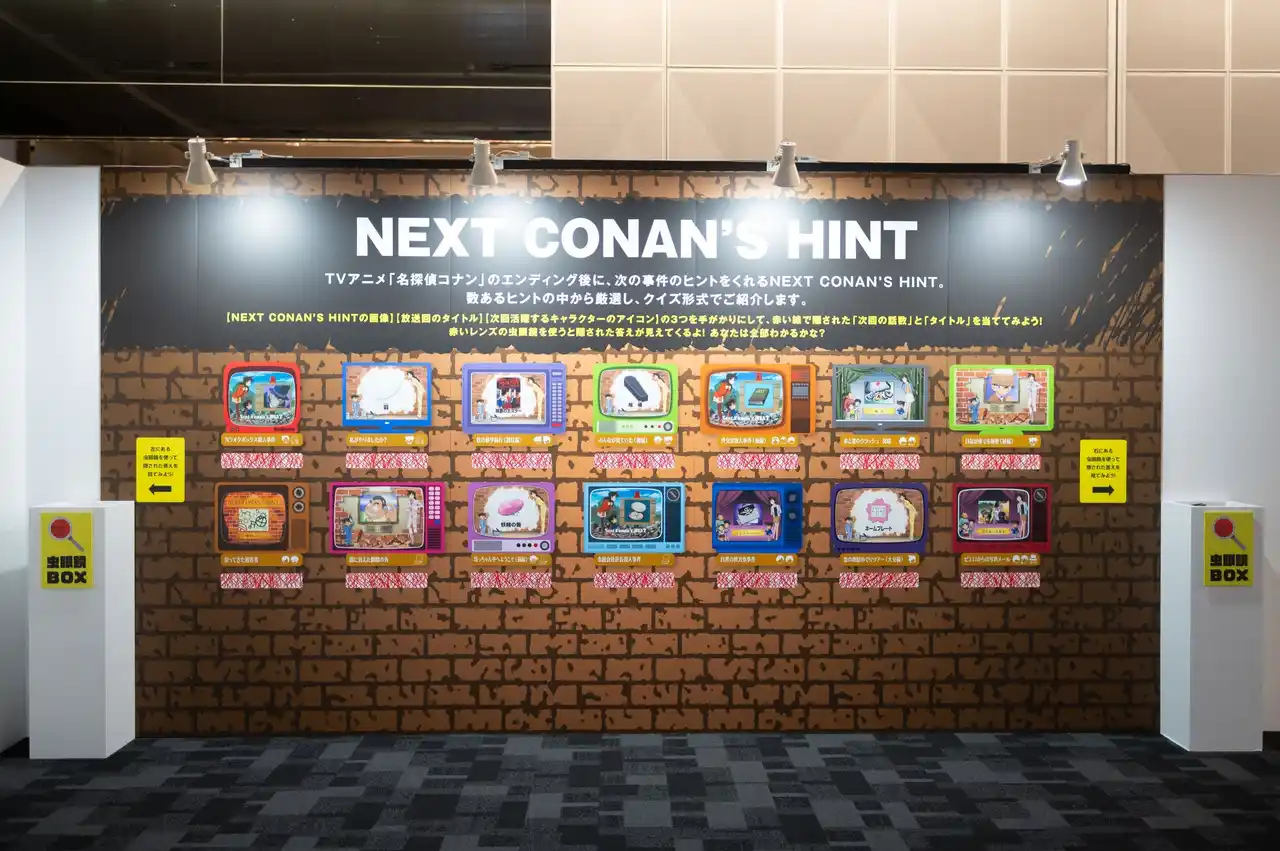 本展では、TVアニメ「名探偵コナン」の30年の歴史を追体験できる展示物や仕掛けが満載! |