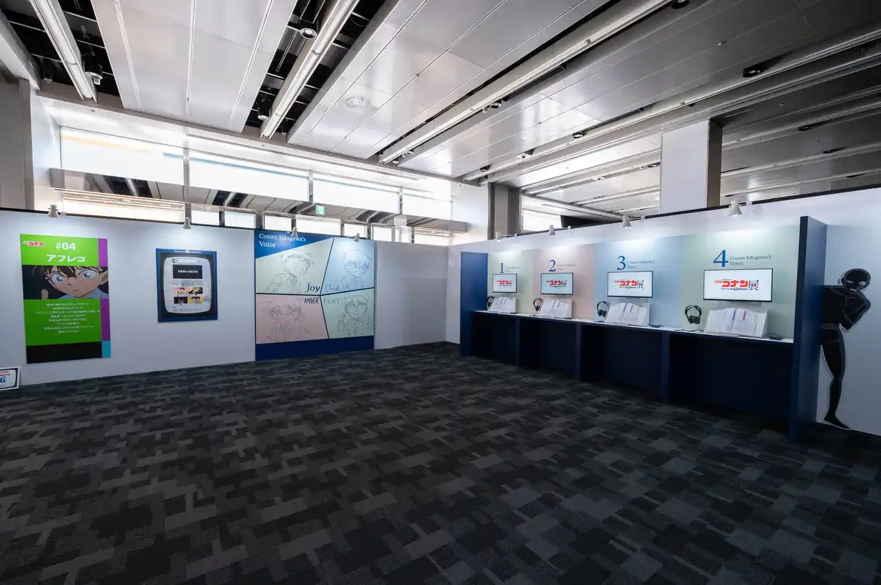ここでは、江戸川コナンの「喜怒哀楽」の違いを聞き比べられるコーナーと、声優の皆さんからのお祝いコメントを展示しています。 |