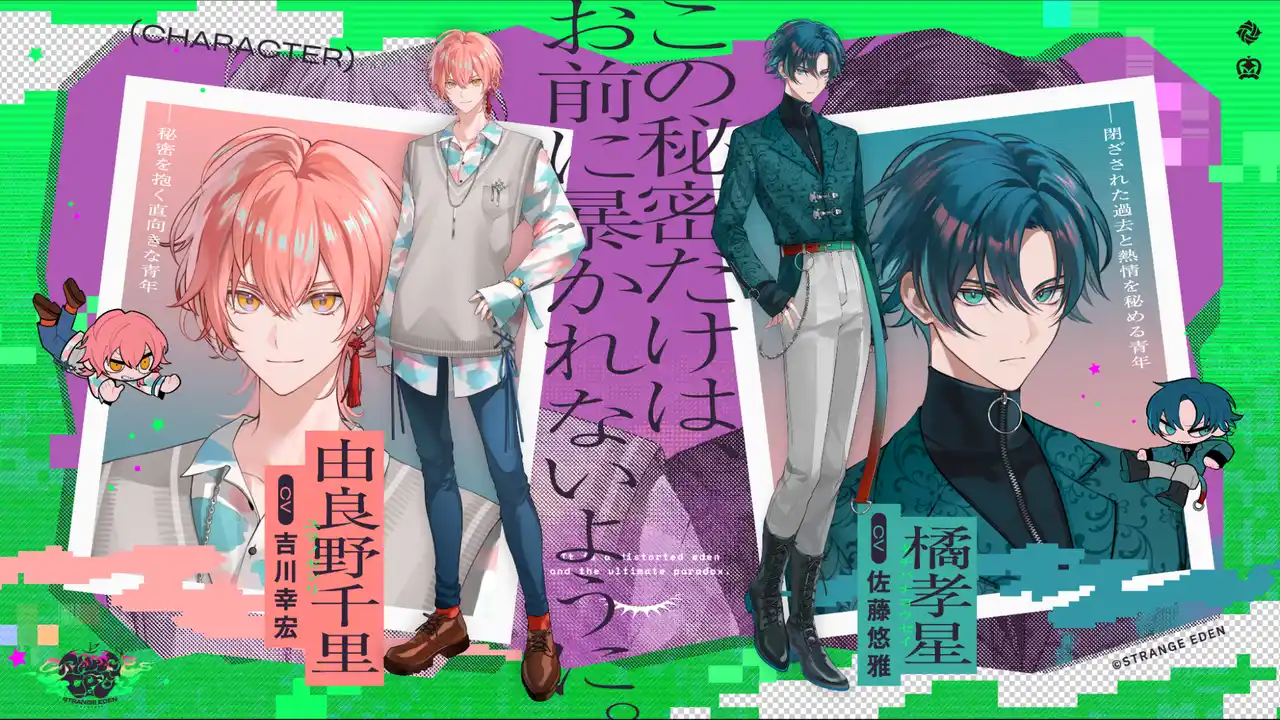 ボカロPとしても活躍するコンポーザー・higmaが制作を担当する切なくも軽やかなエレクトロポップ「Fly!」、トラックメイカー・只野楓が担当しジャズのようにリズミカルかつパワフルなサウンドでキャラクターの秘めた熱情を綴る「電池切れ、叱責」、有名Vtuberへの楽曲提供なども行うYAMAADによるエスニックなメロディとキュートなボカロサウンドをかけ合わせた「xNYAx」と、WEBを中心に活躍するクリエイターが手掛けた個性的な音楽で『STRANGE EDEN』の世界を彩ります。 |
