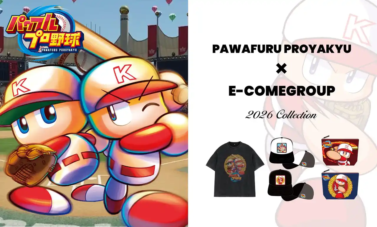 【株式会社イーカムグループ】 E-COMEGROUPより、30年以上の歴史を持つ国民的人気野球ゲーム『パワフルプロ野球』の「さがらポーチ」や Tシャツ等の新作コレクションが登場!
