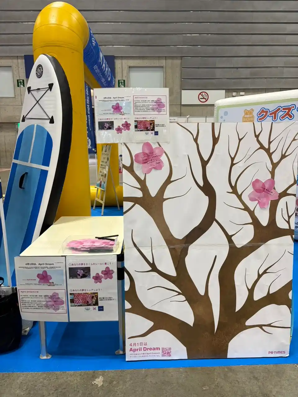 来場者がさくらのシールに「海への夢・将来の夢・叶えたい夢」を自由に書いて、ブース内の桜ウォールに貼り出す企画。 |