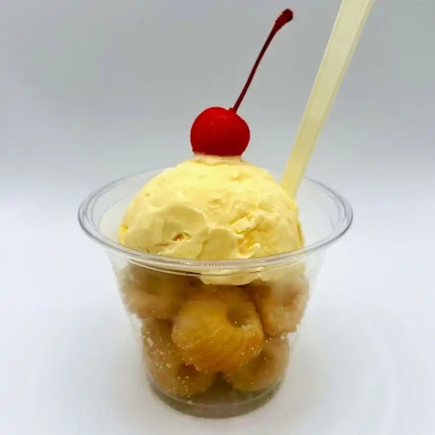 昔懐かしいクリームソーダが、驚きのスイーツに進化!もちもち食感のメロン味のもちチュロを、とろけるバニラアイスと合わせて食べれば、口の中でシュワシュワッとメロンソーダの風味が弾けます。未知のおいしさを、ぜひ体験してください。 |