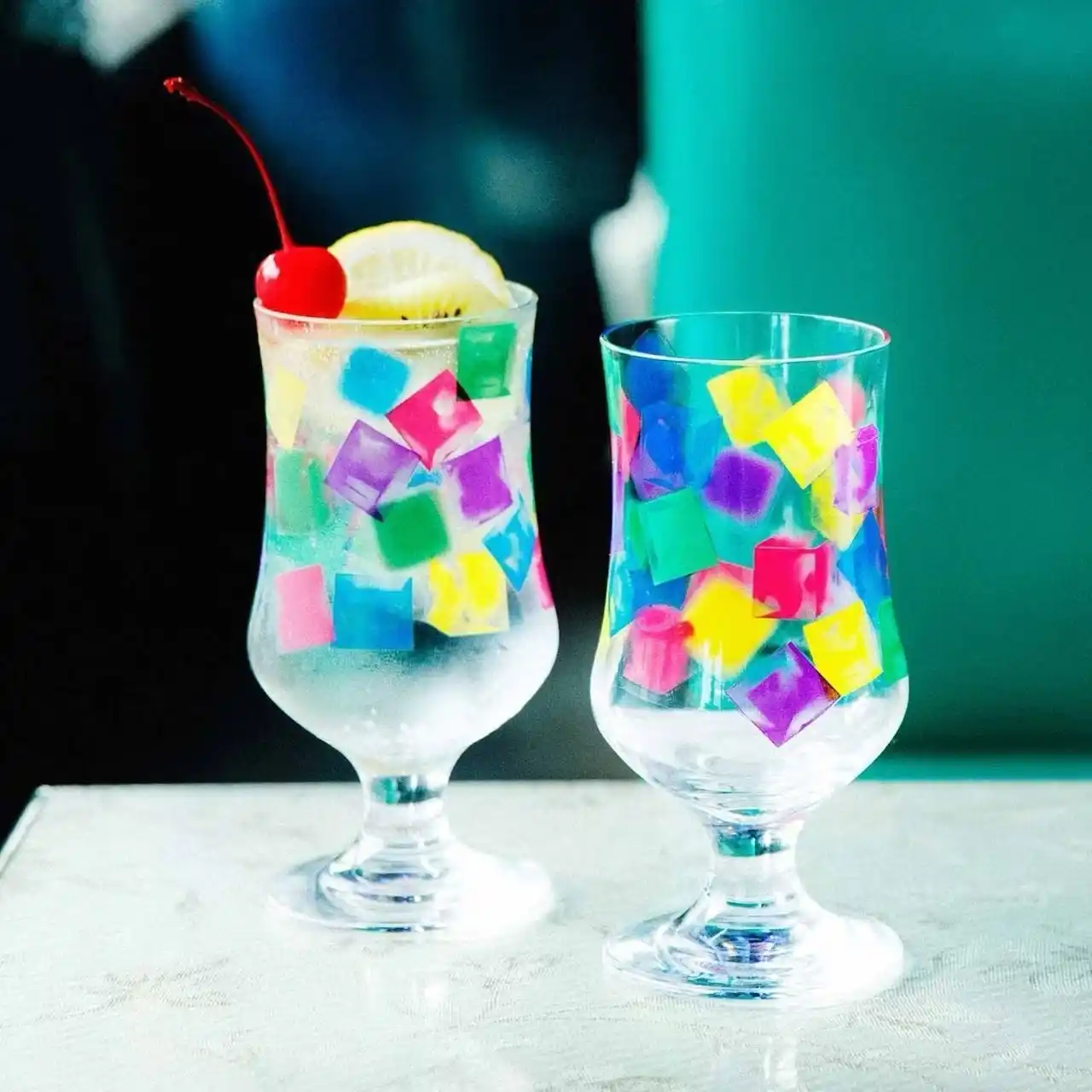 京都・四条西木屋町で昭和23年から愛され続ける「喫茶ソワレ」とのコラボ商品。1975年に誕生した、ほんのり甘いサイダーの中に宝石のような5色ゼリーが入ったあこがれの「ゼリーポンチ」をおうちでも楽しみたくて、ゼリーの色にこだわり、店主お墨付きのフォルムの脚付きグラスで再現。ドリンクだけでなく花を飾ってインテリアにも。 |