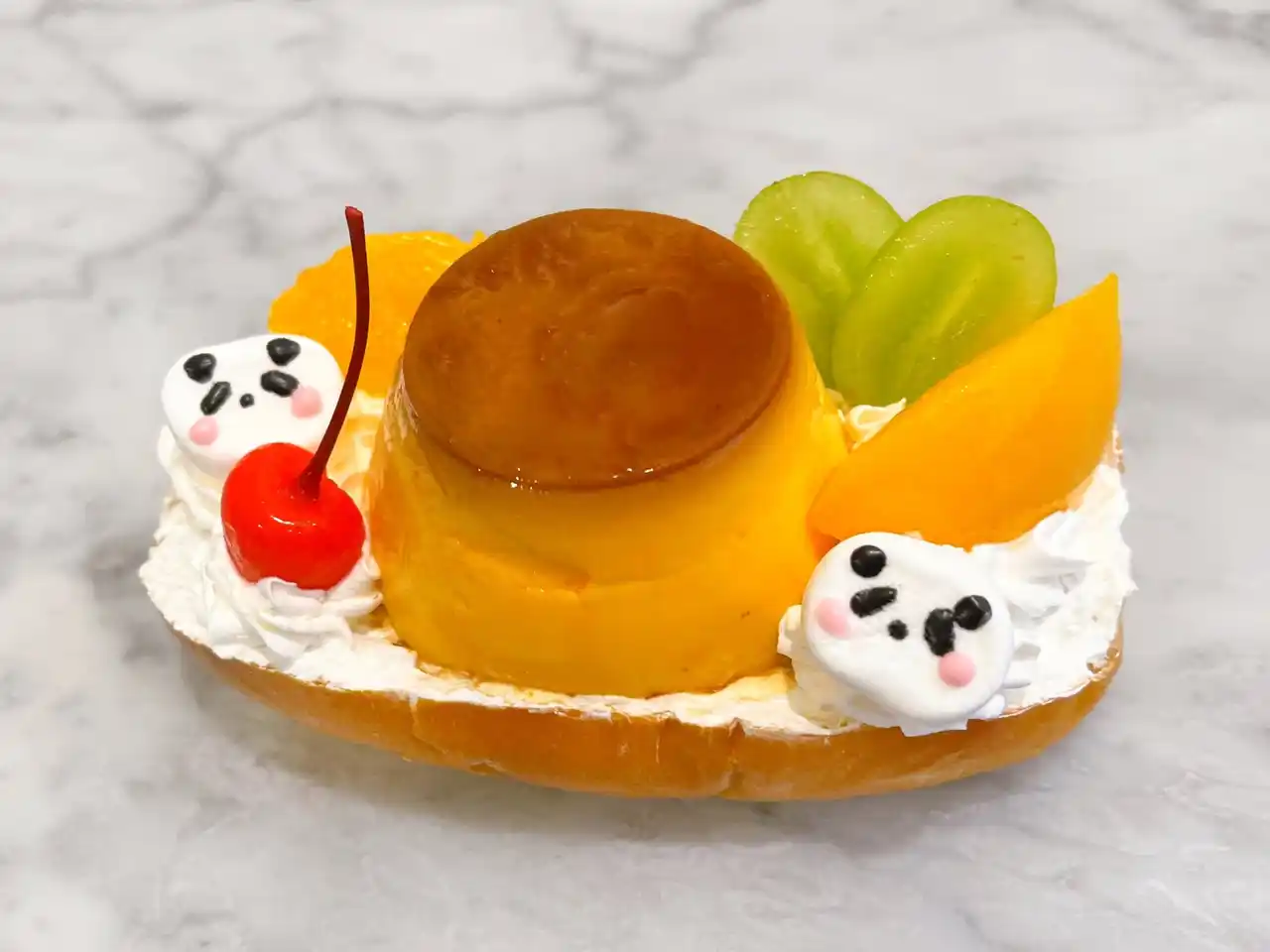 器にしたコッペパンに、レトロかわいいプリンアラモードを再現。懐かしい味わいのプリンに、フルーツとクリームがたっぷり。上野のシンボルであるパンダのマシュマロを添えた「新・映えスイーツ」です。 |