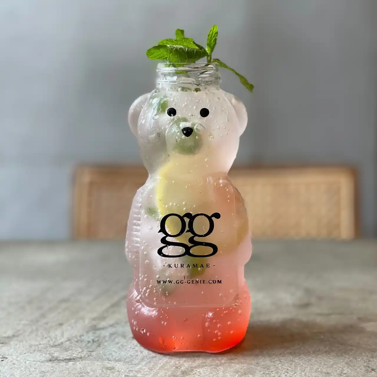 キュートな「くまボトル」に、夏色ドリンクをチャージ!グレナデンシロップが加わったレモネードソーダは、鮮やかな赤と黄色のグラデーションが目を引くこと間違いなし。シュワッと爽やかな炭酸が喉を潤し、気分まで元気にしてくれます。暑い日にぴったりの、見てかわいい、飲んでおいしいサマードリンクをどうぞ。 |