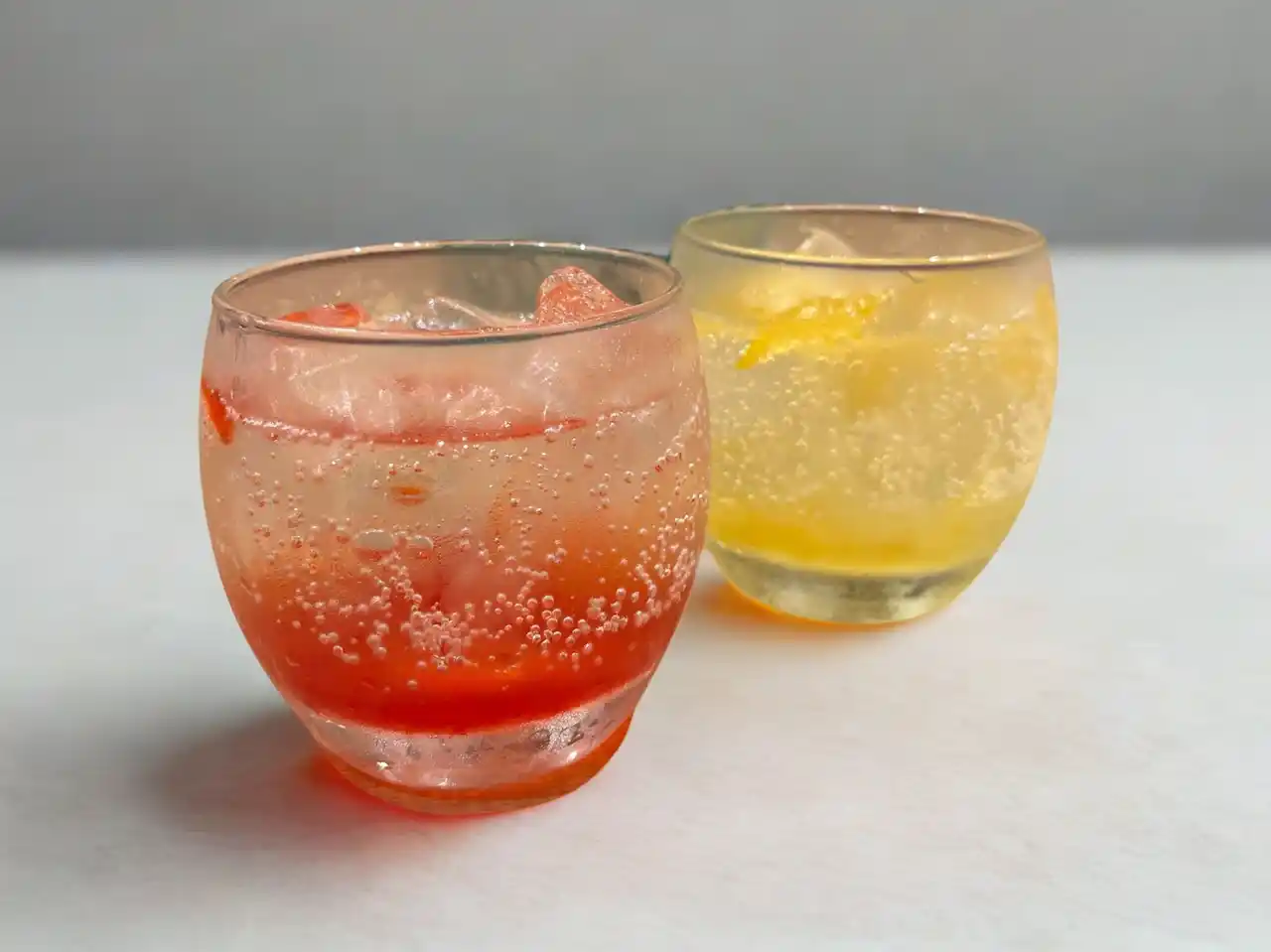 韓国のチルソンサイダーにフレッシュな果実とつぶつぶ果肉をたっぷりIN。シュワッと弾ける炭酸と、果実の甘酸っぱさが口いっぱいに広がる新感覚ドリンク。見た目もカラフルでSNS映えもばっちり!爽やかな「レモン」、甘酸っぱい「イチゴ」、濃厚な「みかん」と、気分で選べる豊富なフレーバーを3種ご用意しています。 |