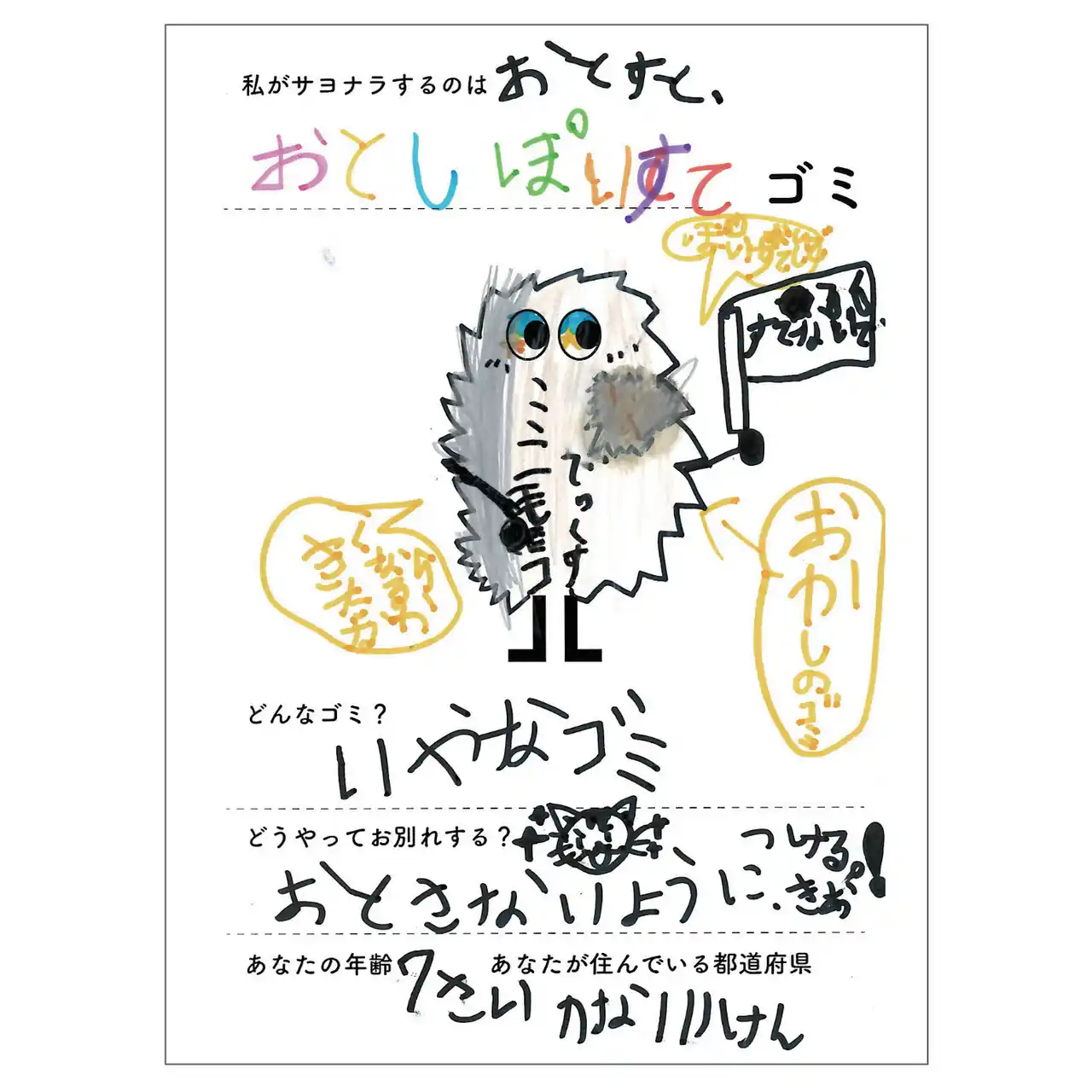 まちに落ちているよく見るごみを、だしたひとの気持ちで表現したキャラクターたち |