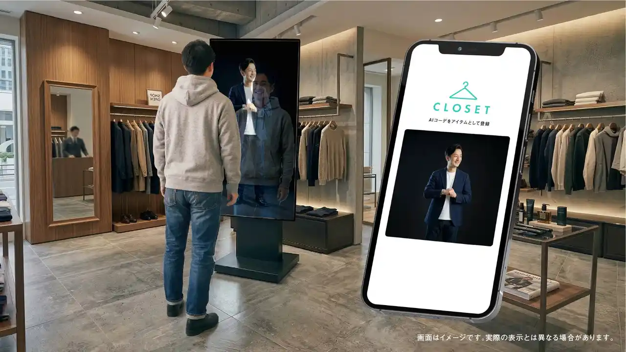 coordimateAIの利用で蓄積された「デジタルクローゼット」のデータを、現在、商業施設での展開を進めている「次世代型デジタルミラー」と連携させます。実店舗での買い物時に、目の前にある新しいアイテムと、自分が持っている服との組み合わせをミラー上で確認しながら買い物ができる、新しい購買体験を実現します。将来的には、coordimate AIをデートに加えて、仕事、就職活動、会食、旅行、商談など、さまざまなシーンにおける服選びを支えるサービスへと展開するとともに、ファッションにとどまらず、美容やインテリアも含めた「他人にどう見られるか不安」に応える、汎用的なAIパートナーへと進化させてまいります。 |