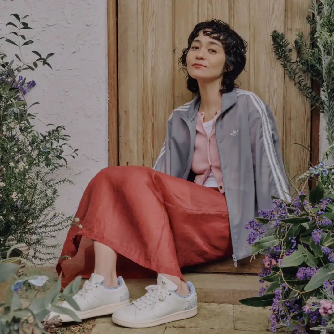 本コレクションでは、モデルの竹下玲奈さんが着用した4つのLOOKを展開します。フリルのスリーストラプスをあしらったシアージャケットやプリーツスカート、デニムセットアップなどの春らしいスタイリングに「STAN SMITH」や「TOKYO W」を合わせ、コレクションの魅力を表現しています。 |