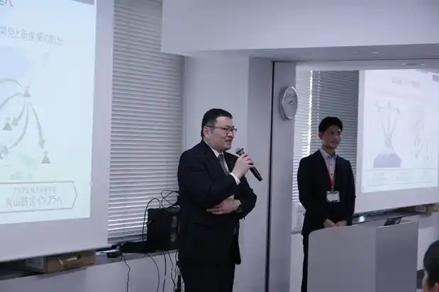 まず、五十嵐専任部長が、「火山は極めて高度な専門性を要する分野であり、企業単独では到達しにくい知見を研究所が補完してくれることで、実装の速度と精度が確実に上がる」と述べ、産学官の協働によって技術開発が大きく前進した手応えを語りました。 |