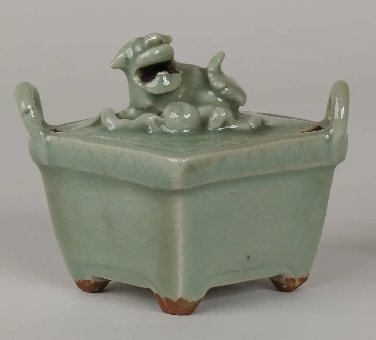 青磁獅子形鈕付菱形香炉 当館蔵(一橋徳川家記念室) |