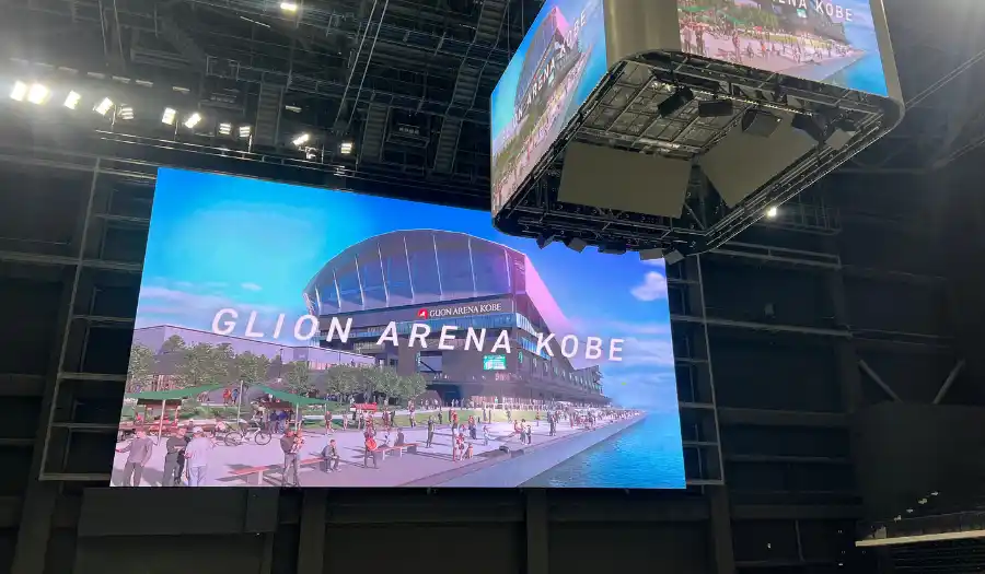 GLION ARENA KOBEには、バスケットボールは勿論、幅広い自主イベントを想定し、国内最大級、高さ13m、幅24mの常設LEDビジョンが設置されています。また世界的なスピーカーブランドであるd&b製の連結ラインアレイスピーカー7基をはじめ、全50基のスピーカーで大迫力のエンタメ空間を演出します。 |