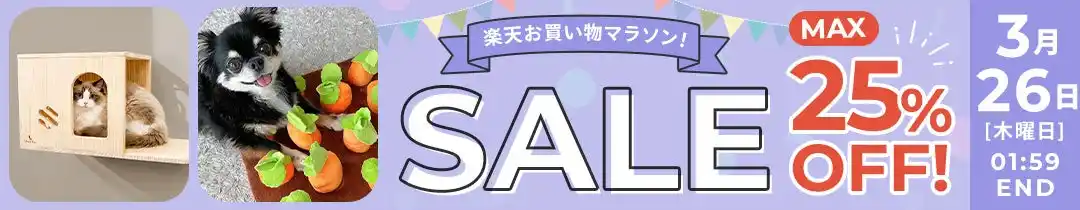 PetFun(ペットファン)楽天市場店では、3月26日(木)01:59まで楽天お買い物マラソンセールを開催。 店内では対象アイテムに使える最大25%OFFクーポンを配布中のほか、各種クーポンを配布しており、複数商品をまとめて購入したい方にもおすすめです。ぜひご活用ください。 |