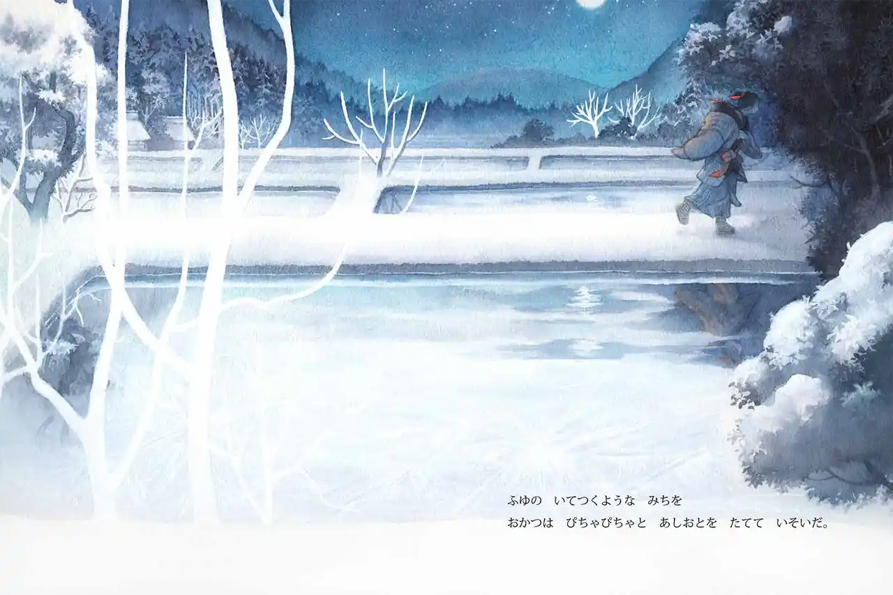 | 幼子をせおい、まっくらな道を進むと、ぼんやりと光る滝が現れて──。 | |||||||||||||||||||