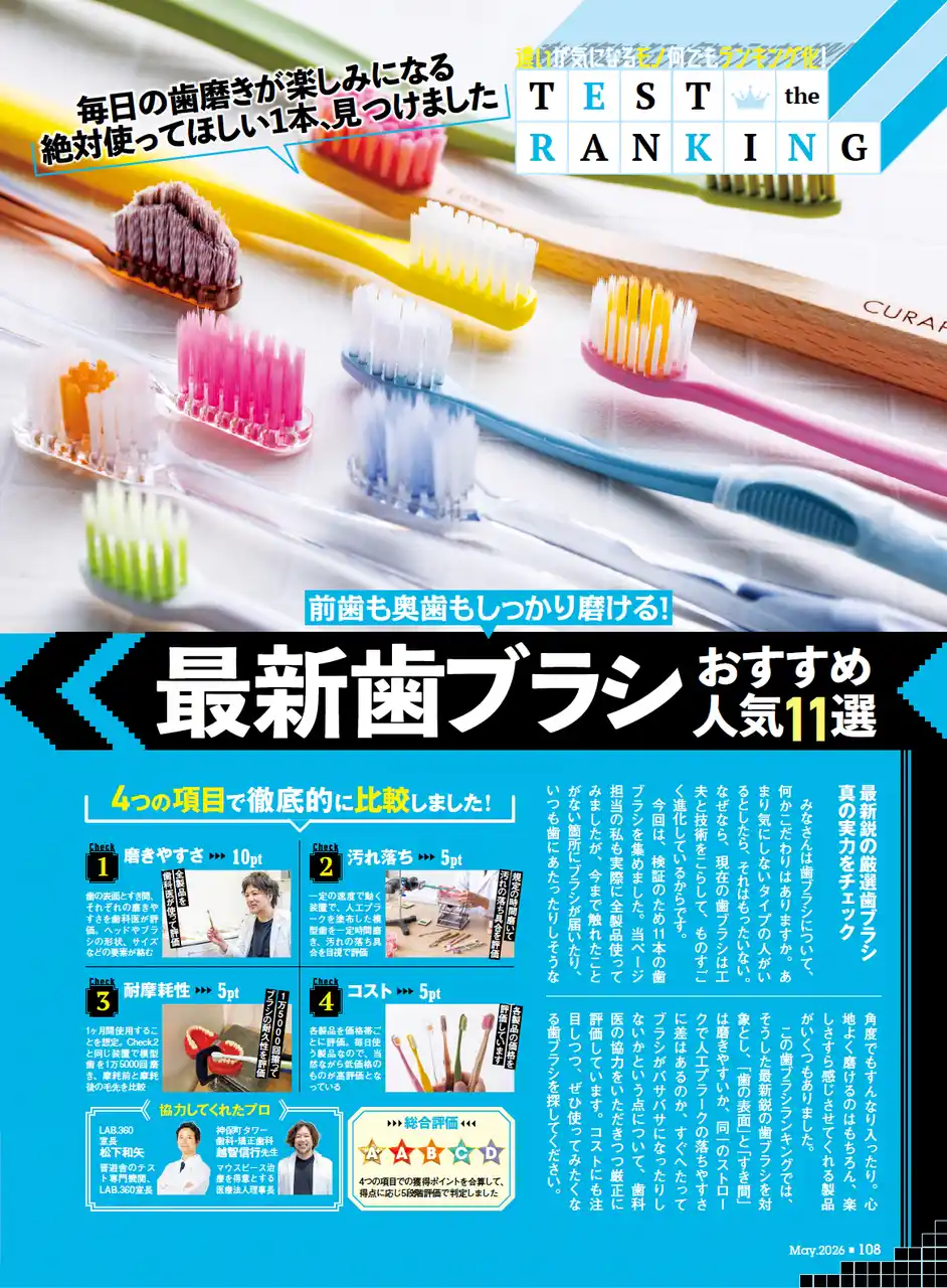 現在の歯ブラシは工夫と技術をこらして、ものすごく進化。心地よく磨けるのはもちろん、楽しさすら感じさせてくれる製品があります。そこで、今回は最新鋭の歯ブラシ11本を集め、歯科医の協力をいただきつつ厳正に評価しました。使ってみたくなる歯ブラシをぜひ探してください |