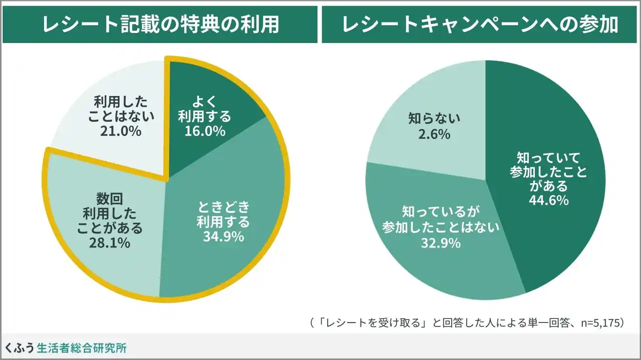 ・約8割がレシート記載の「クーポン・割引」の利用経験あり、4割以上が「レシートキャンペーン」への参加経験も |