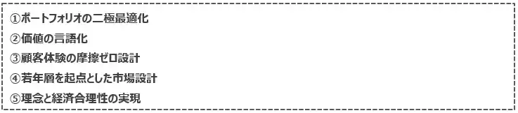 一方で、「安心・安全」や「ブランド」、「見た目・デザイン」といった要素も一定の影響を持つが、「サステナブル」などの社会的価値の優先度は相対的に低い。 |
