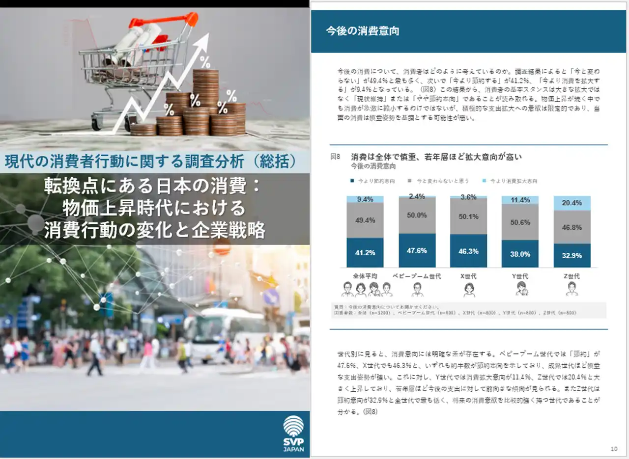 会員制マーケットリサーチサービスを提供している、株式会社SVPジャパン(本社:東京都中央区、代表取締役社長:橋本雅、以下「SVPジャパン」)は、「現代の消費者行動に関する調査分析」と題して、主要世代の消費者行動のトレンドを把握することを目的に、定点観測を実施。今回は2025年9月から2026年1月に実施した調査結果に基づき、その総括として、物価上昇時代における消費行動の変化と企業戦略についてまとめた。 |