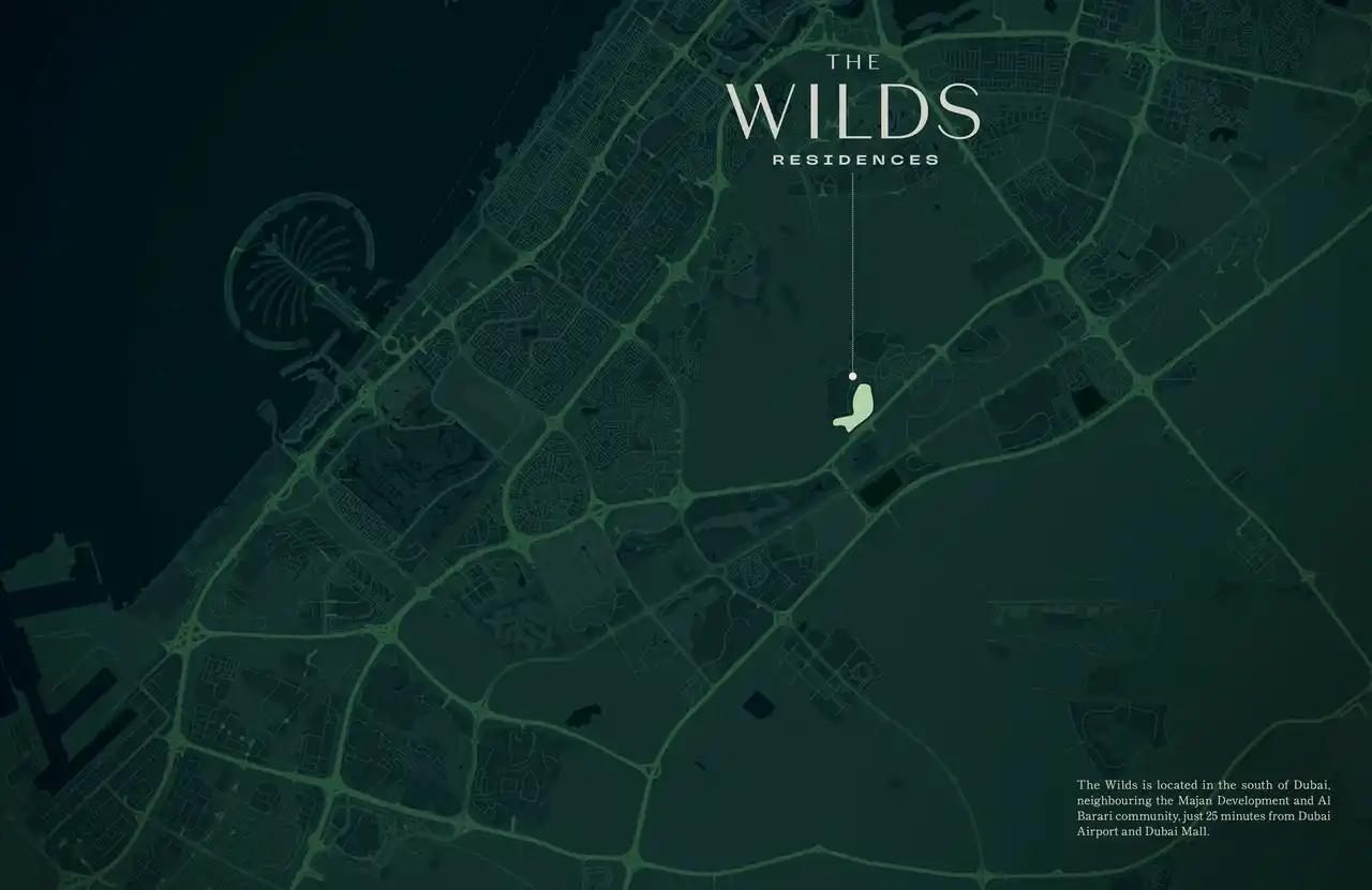 The Wilds Residencesは、ドバイ西部の住宅開発エリア Dubailand(ドバイランド)に位置しています。 |