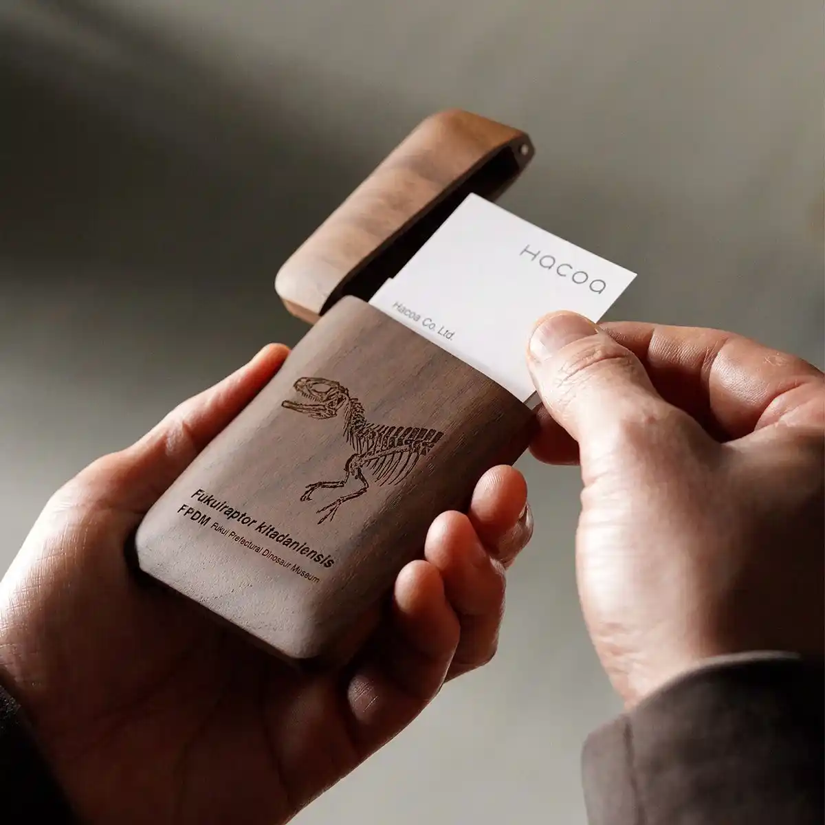 木製デザイン雑貨ブランド「Hacoa(ハコア)」を展開する株式会社Hacoa(本社:福井県鯖江市、代表取締役:市橋人士)は、福井県立恐竜博物館(福井県勝山市)とのコラボレーション第2弾として、同館監修の「フクイラプトル」骨格図を刻印した新ラインナップ4アイテムを、2026年3月19日(木)より発売いたします。 |