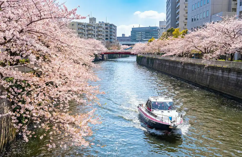 新艇の初運航を飾るのは、毎年予約が殺到するプライベート利用での「目黒川お花見CHANDONクルーズ」です。人混みを離れ、水上から見上げる桜のトンネルは圧巻の一言。新艇の安定した乗り心地で、スパークリングワインを片手に贅沢な花見体験を提供します。 |