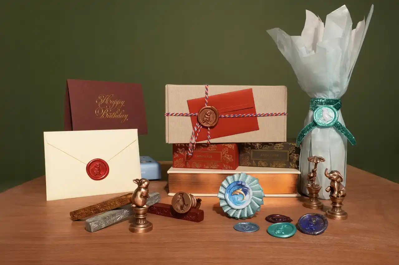 古代から重要な文書の封印などに使われ、現代では手紙や招待状の装飾、プレゼントのラッピングなど、様々な用途で楽しまれているシーリングスタンプ。〈アニマリエ〉の8種類の動物たち(ウサギ、ペンギン、フクロウ、カエル、カメ、イルカ、キツネ、ゾウ) は、それぞれラッキーモチーフとしての意味を持ち、世界で幸運のお守りとして愛されています。手紙やギフトに心からの幸せを願う想いを添えて。大切な方との気持ちのつながりが深まることでしょう。 |