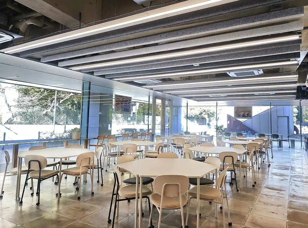 当施設を手がけた株式会社トイアーキテクツ様による設計段階からの検証とアプローチにより、公共性の高い大学施設において効果的に導入できる運びとなりました。材料の魅力と効果を最大限発揮していただいた本事例は、次世代の空間設計における新たなソリューションを提示しています。 |