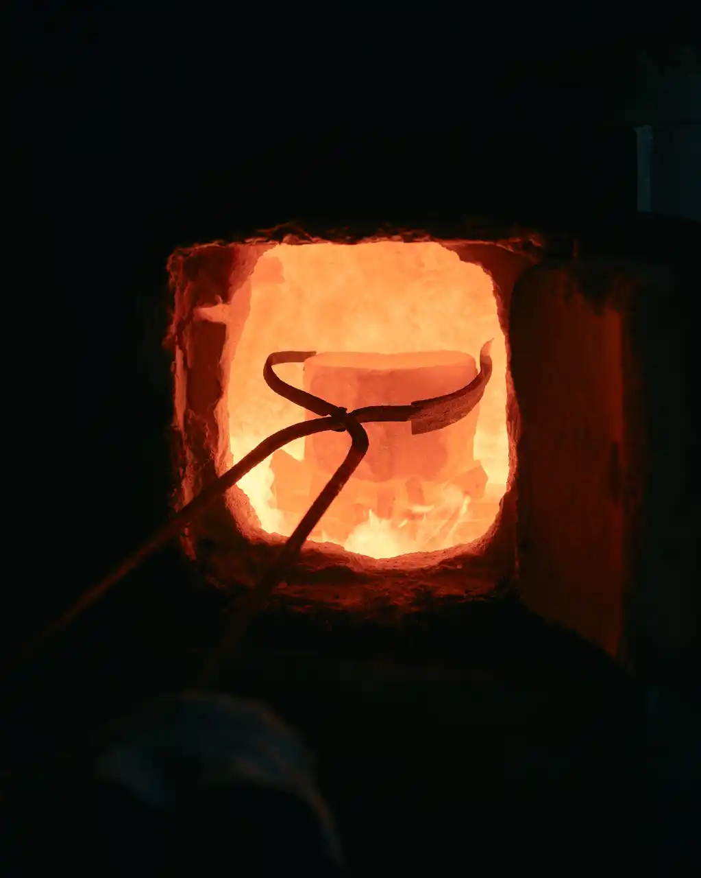 この石をのみと金槌で割り、旋盤で削り出し、1300℃を超える過酷な炎で再び焼き上げます。一度マグマの状態へと還った石から釉薬成分が溶け出し、表面に現れる「景色」は、自然が生み出した偶然の芸術です。 |