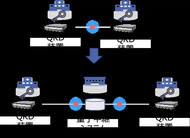 図 量子中継システムによる長距離量子鍵配送 |