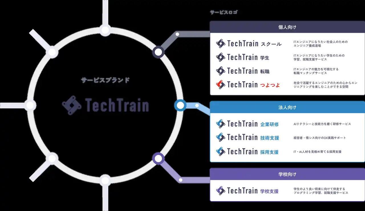 エンジニア職の方はもちろん、営業、マーケなどさまざまな職種の方に向けたITスキル研修を提供するサービスです。 |