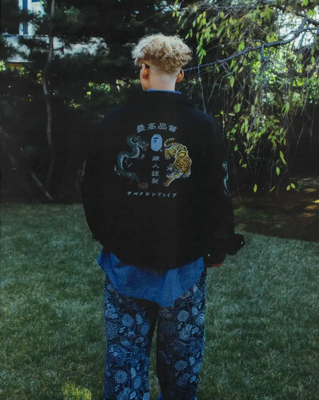日本製デニムのアイテムは、緻密な構造と素材本来の魅力を際立たせ、スーベニアジャケットは伝統的なモチーフと現代的なストリートシルエットを融合させています。 |