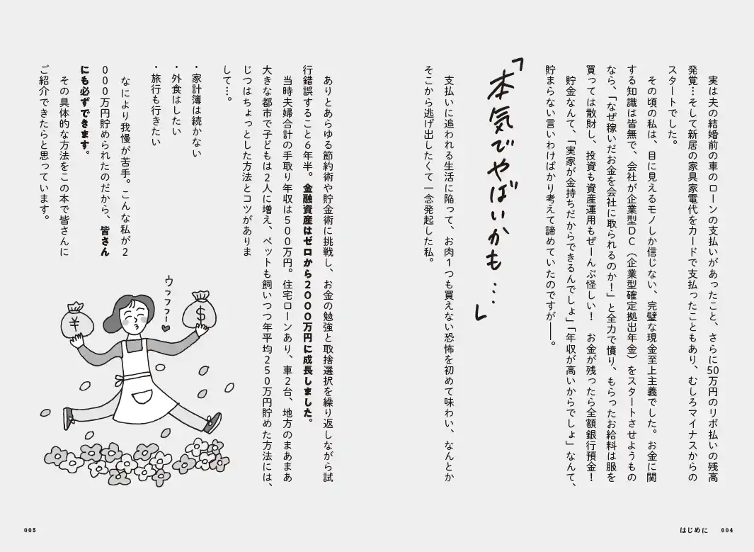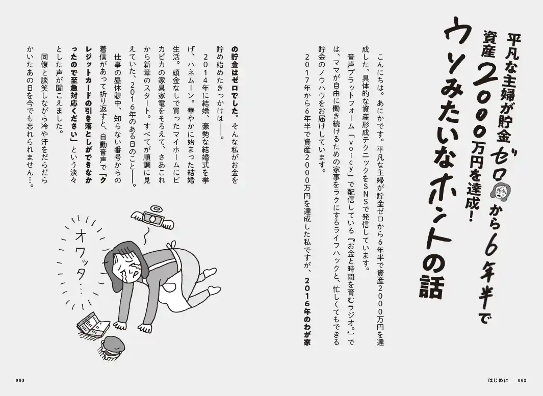 | タイトル:『ズボラ主婦でも6年半で2000万円貯まりました! 夫婦手取り月45万の4人家族が実践した 時間もお金も育てる暮らし方』 | |||