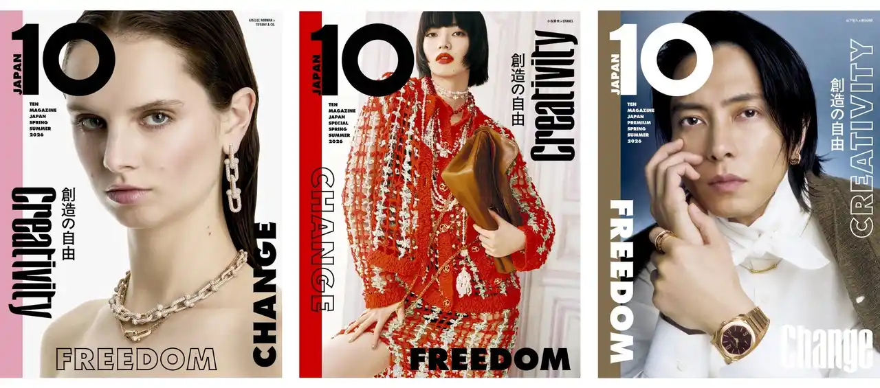 株式会社世界文化社 (東京都千代田区) は、ロンドン発グローバル・ファッション誌『10 MAGAZINE』の日本版『10 MAGAZINE JAPAN』2026年春夏号を、3月21日(土)に発売します (発行:株式会社 sei sempre sul pezzo)。最新号のテーマは「創造の自由」。表紙は、ジゼル・ノーマン、小松菜奈、山下智久をそれぞれ起用した3パターンで展開します。