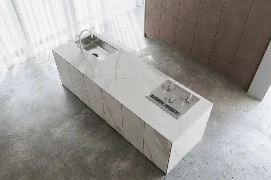 ヨーロッパでは、大判タイルを用いたセラミックキッチンが主流化しており、日本国内でも高級キッチンメーカーを中心に採用が広がっています。セラミックは耐熱性・耐傷性・耐汚性・耐候性などの優れた特性を持ち、近年はメンテナンス性を重視するお客様からの関心も高まっています。 |