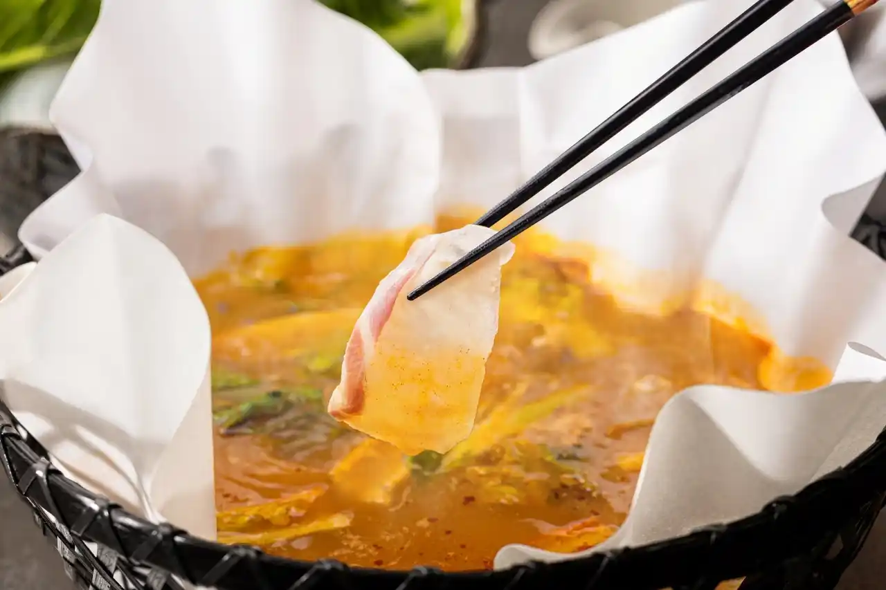 【瀬戸内産真鯛のトムヤムクン鍋】瀬戸内海で獲れた真鯛を、爽やかな酸味と辛味が特徴のトムヤムクン仕立ての出汁で味わう鍋料理。真鯛の甘みとスパイシーな風味の組み合わせが食欲をそそります。 |