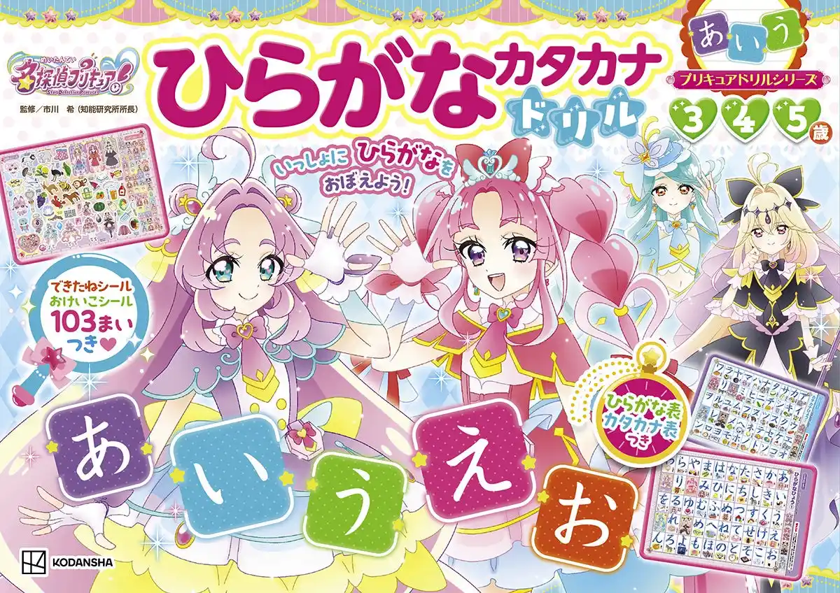 『プリキュアドリルシリーズ めいたんていプリキュア! ひらがなカタカナドリル』は、プリキュアと一緒に、たのしくひらがなカタカナを学べる1冊。 |