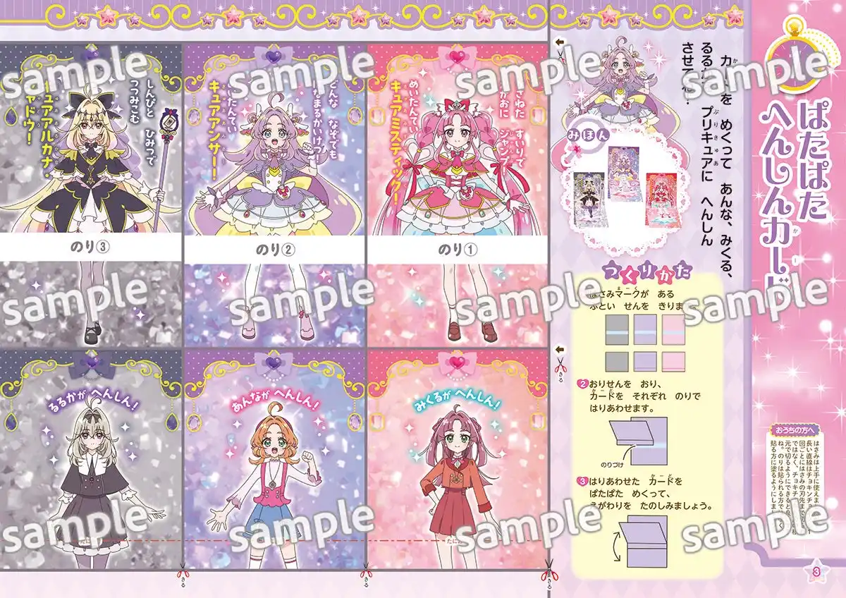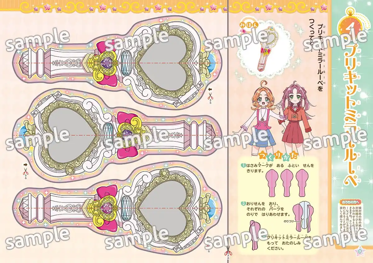 プリキュアになりきれるアクセサリーや、プリキットミラールーペの工作も収録。かんたんな工作から徐々に難易度が上がっていくことで、楽しくはさみやのりの使い方を覚えることができます。 |