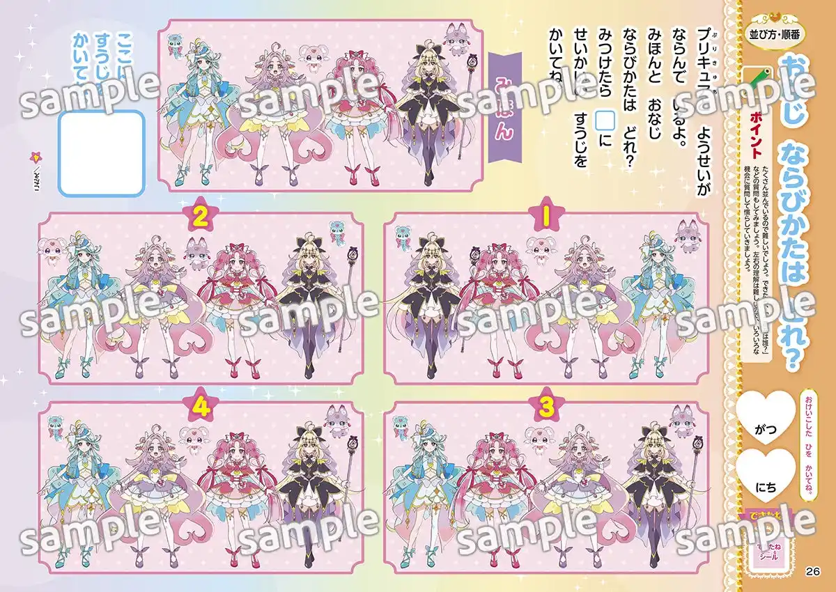 プリキュアの世界観を反映した問題とイラストで、お子さんが楽しみながら取り組むことができます。 |