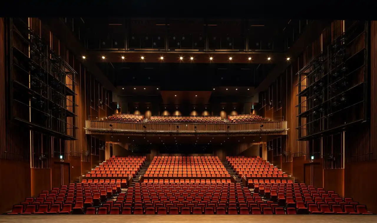 ※2 演劇・ミュージカル・音楽ライブ等を主たる演目と想定し、後方が高くなるよう段差を設けた客席配置とした劇場 |
