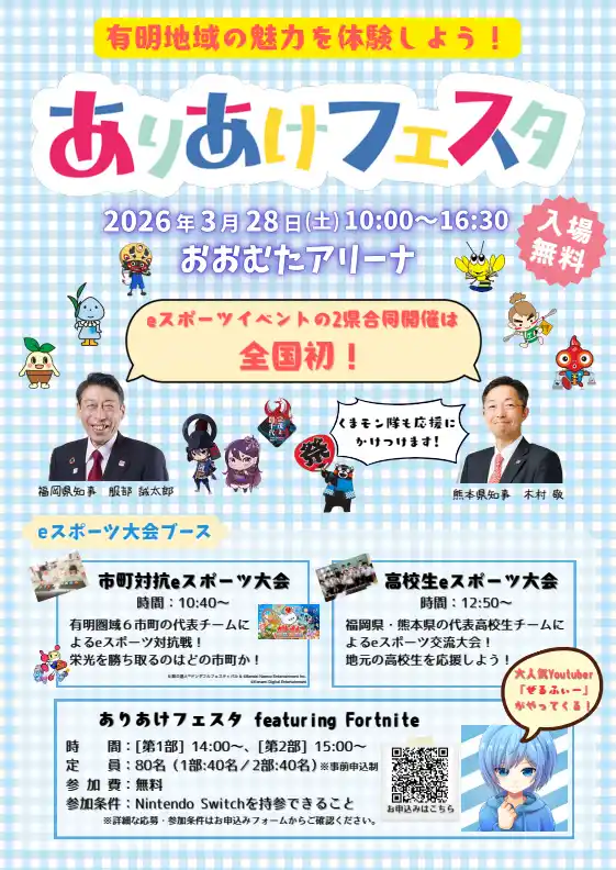 | 福岡県と熊本県の合同開催となるeスポーツイベント「ありあけフェスタ」を開催します。 | |||||||||