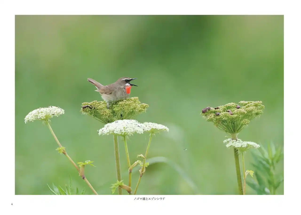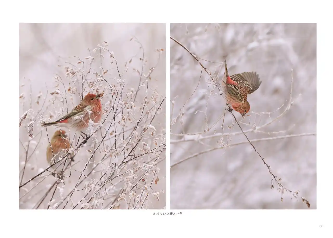 B5横判・フルカラー80ページにわたり、ノゴマ、ムギマキ、オオマシコ、ベニマシコ、コマドリ、コルリ、キビタキ、マミジロキビタキ、コサメビタキ、オジロビタキ、エゾビタキ、ヒレンジャク、サンコウチョウ、ヤマセミ、アカショウビン、ブッポウソウ、コゲラ、アオゲラ、アカハラ、ツグミ、コガラ、ウソ、ジョウビタキといった、日本の野山や水辺に生きる多彩な鳥たちの姿を収録しています。 子育てや巣立ちの瞬間、空中で獲物をとらえるホバリングキャッチなど、野鳥たちの生命力と一瞬の輝きを切り取った写真の数々は、観察眼と粘り強い撮影の積み重ねの結晶。 野鳥ファンはもちろん、自然写真の魅力に触れたい方にもおすすめの一冊です。 |