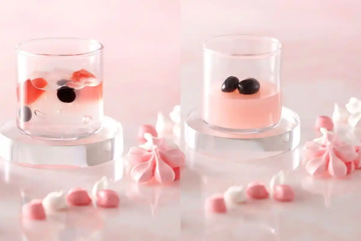 春の訪れを感じさせる和スイーツ2種が、期間限定で新たにラインアップ。桜風味のくず餅ゼリーに黒蜜あんこ、塩えんどう豆、桜の塩漬けをあしらった『桜くず餅ゼリー』は、やさしい甘さとほのかな塩味が調和する上品な味わいに仕上げました。さらに、口どけの良い寒天にさくら寒天とあまおう寒天を重ね、やわらかく弾力のある桜の求肥を添えた『さくら寒天』も登場。桜の風味と彩りをお愉しみいただける、春ならではの和スイーツです。 |