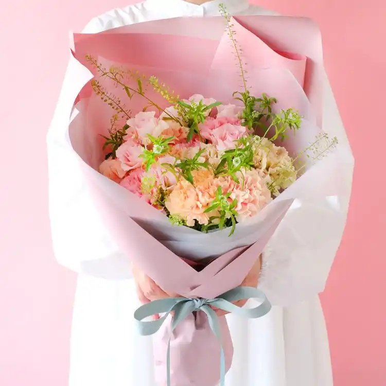 淡いピンクと優しいベージュが柔らかく溶け合い、ふんわり寄り添うやさしい色合いの花々が、お母さまへ伝えきれない気持ちをそっと届けます。 |