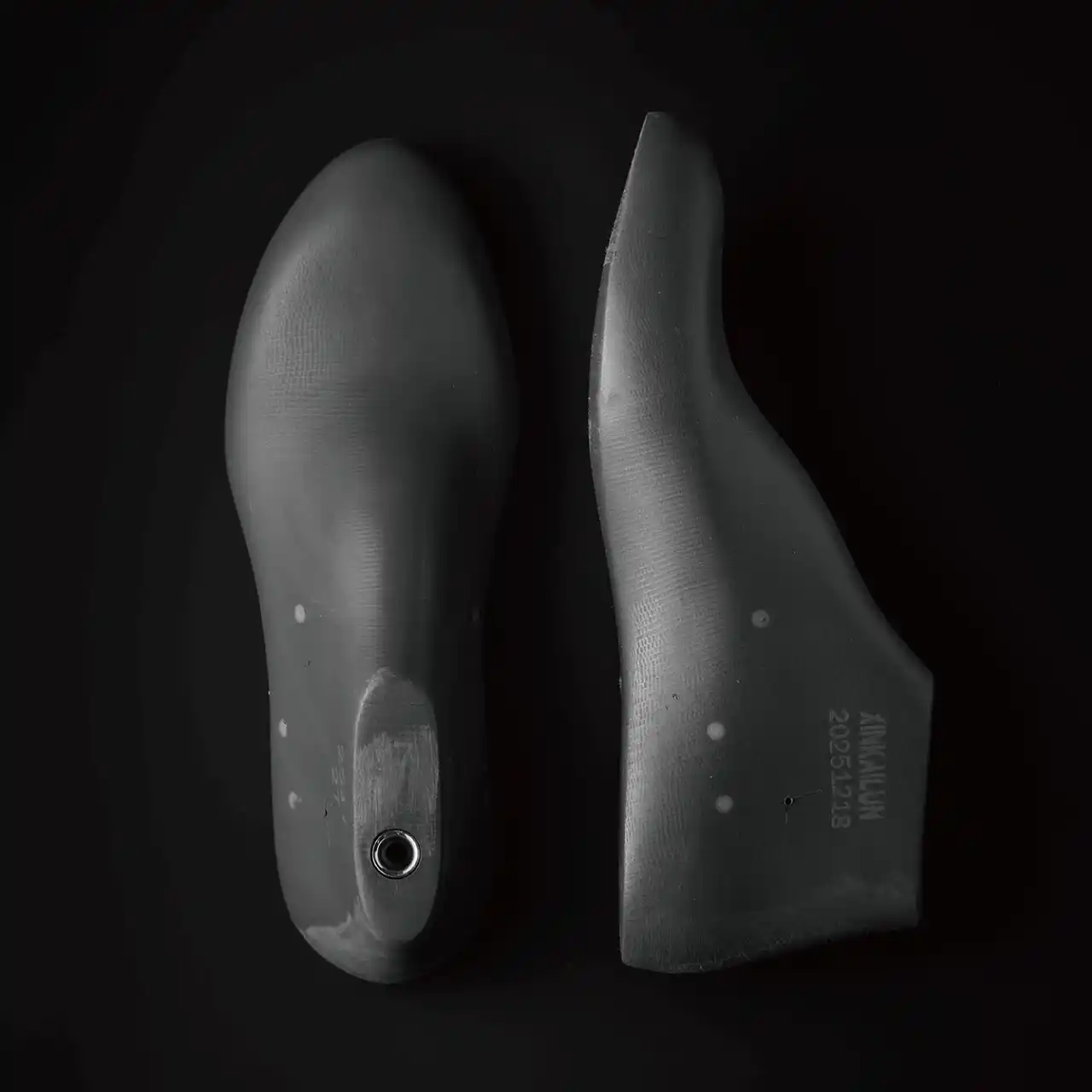 革靴とスニーカーの融合を掲げる FIYAD は、スニーカーでは珍しい革靴のラスト(木型)を採用。大量生産向けの左右対称に近いラストではなく、足入れの感触や当たりまでミリ単位で調整し、究極のフィット感とホールド性を追求した独自の木型に仕上げている。 |