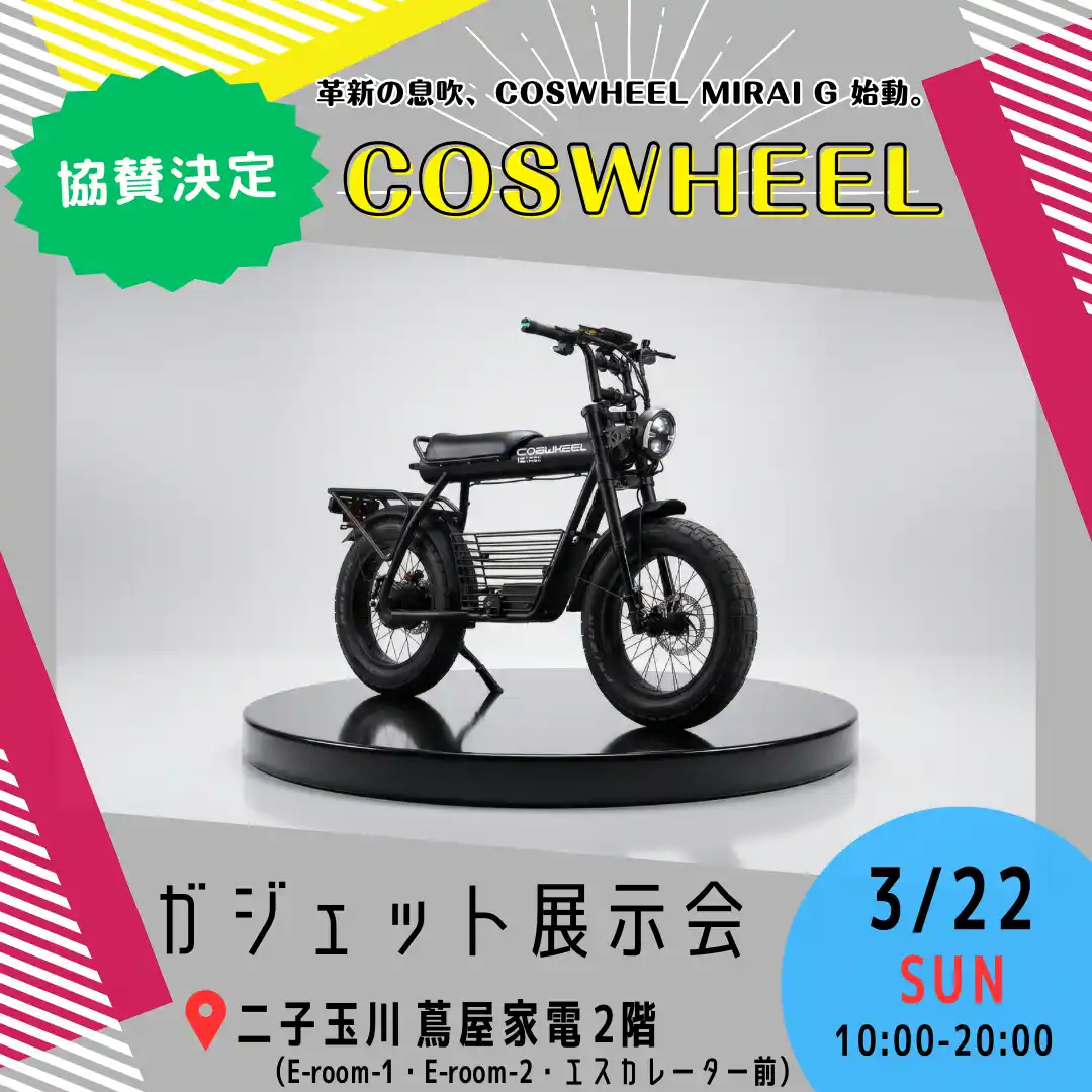 次世代型製品を展開する株式会社Acalie(本社:愛知県名古屋市、代表取締役:中友 孟涛、以下 Acalie)は、2026年3月22日に二子玉川 蔦屋家電で開催される「ガジェット展示会2026春」にて、Makuakeプロジェクト応援金額1億円突破した特定原付・一般原付のCOSWHEEL「MIRAI G」や最新ウェアラブルおよびスマートデバイスブランド「Even Realities」「RingConn」「Zenchord」の4ブランドを展示いたします。本展示では、特定小型原付・次世代ウェアラブルデバイスなど、日常生活に自然に溶け込むテクノロジーをご体験いただけます。 |