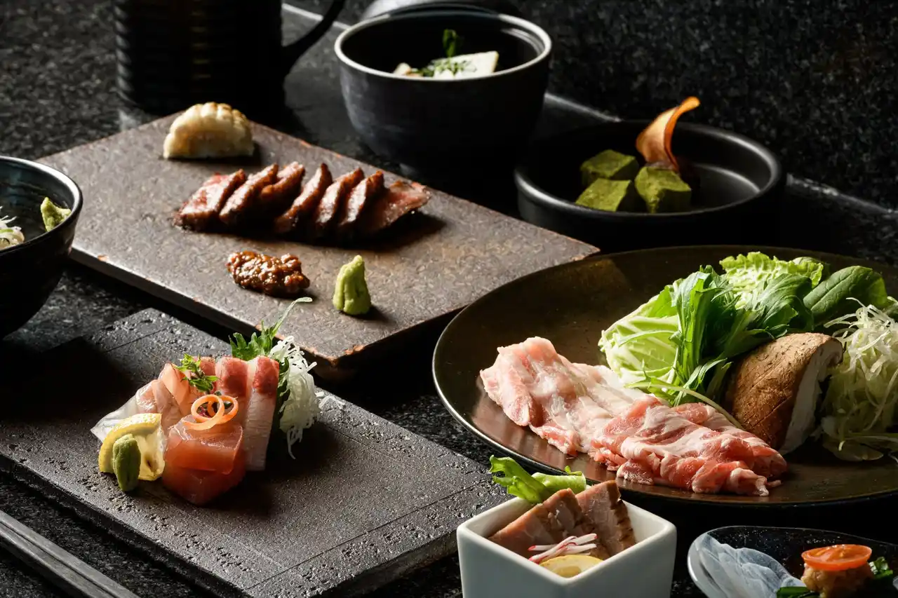 JA鹿児島県経済連とJF鹿児島県漁連とのコラボレーションにより、県産の上質な食材を堪能いただける特別コースをご提供します。新鮮なカンパチと鯛は、お刺身や煮物など素材の持ち味を活かした一皿に。棚田米はシラスご飯や出汁茶漬けでお楽しみください。 |