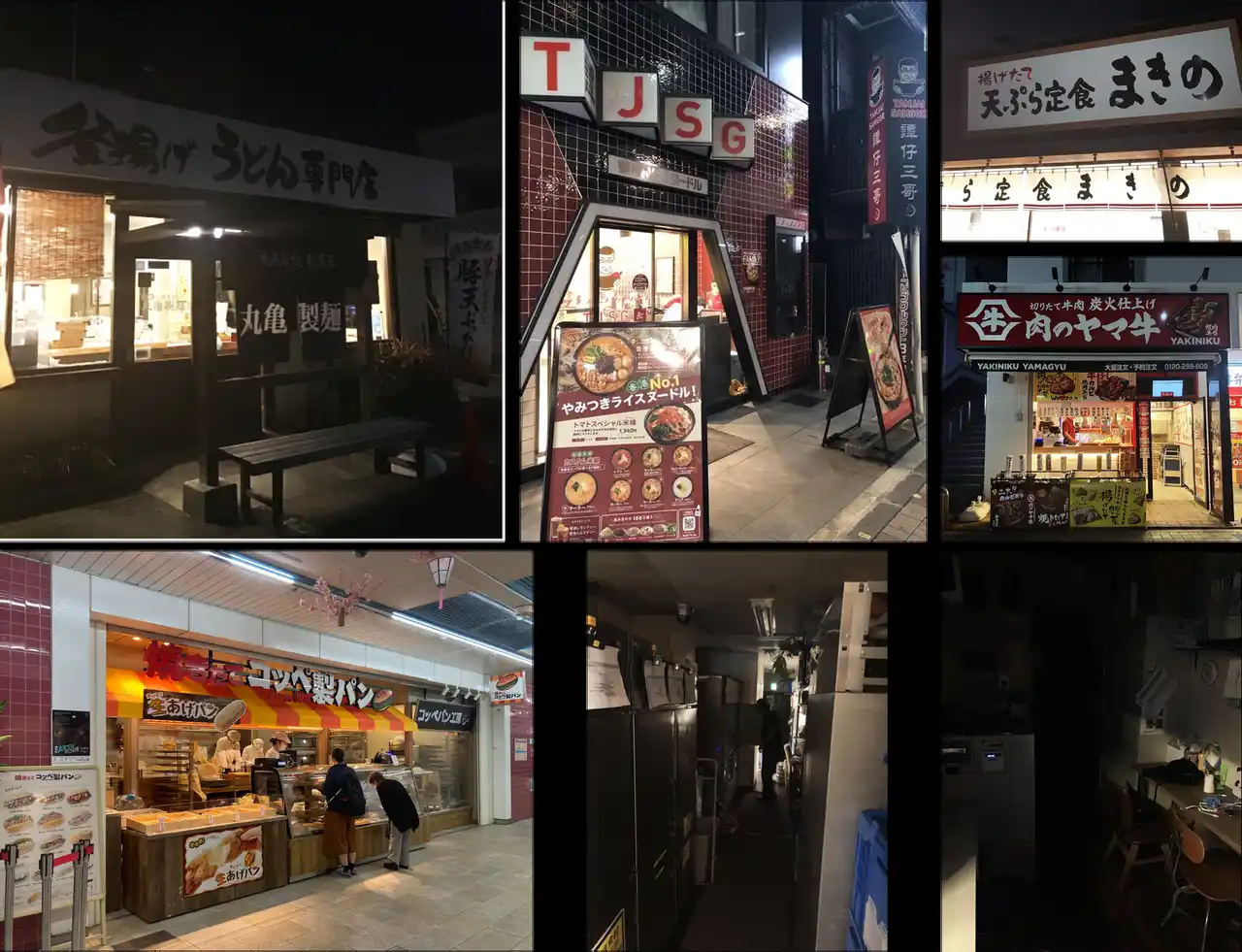 【国内】2025年度の活動に参加した「丸亀製麺」「譚仔三哥米線」「天ぷら定食まきの」「肉のヤマ牛」「焼きたてコッペ製パン」の店舗での消灯。「やきとり屋とりどーる」「コナズ珈琲」でのバックヤードの消灯の様子 |