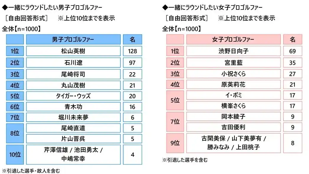 全回答者(1,000名)に、一緒にラウンドしたい人物について質問しました。 |